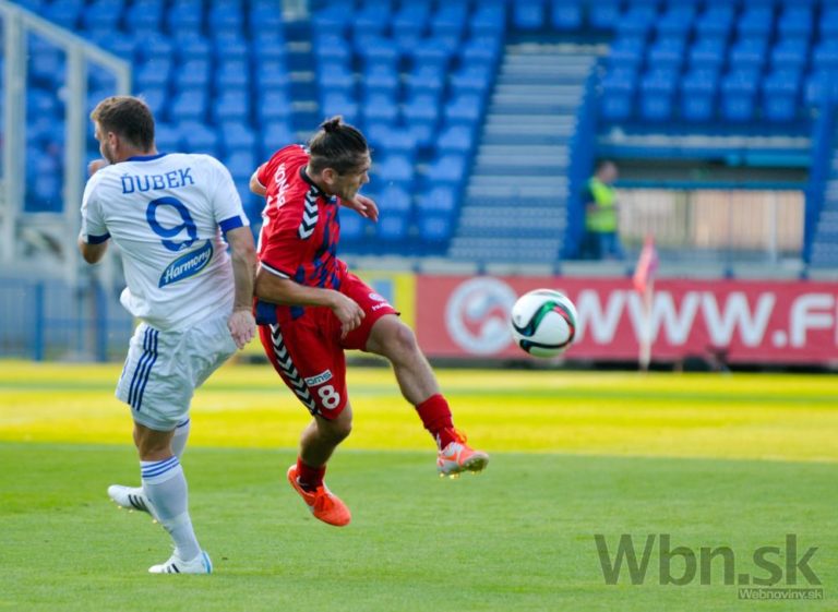 Sprava: Zoltán Kontár z FK Senica a Tomáš Ďubek z MFK Ružomberok v zápase 2. kola futbalovej Fortuna ligy. Senica, 24. júl 2015. Foto: SITA/Martin Medňanský