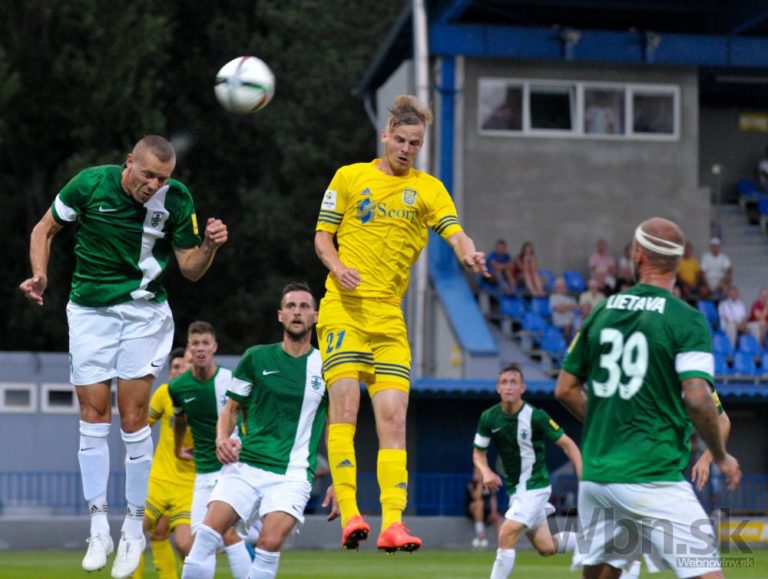 Zľava: Samuel Mráz z FK Senica a Martin Boszorád z MFK Ružomberok v zápase 2. kola futbalovej Fortuna ligy. Senica, 24. júl 2015. Foto: SITA/Martin Medňanský