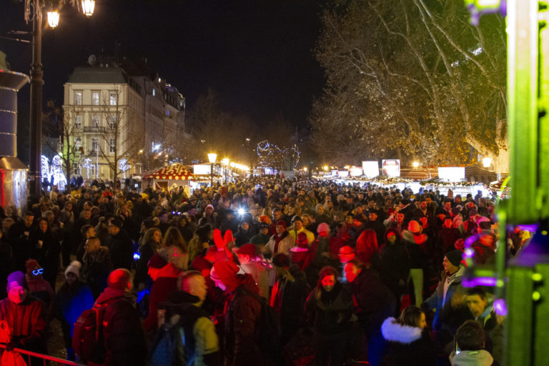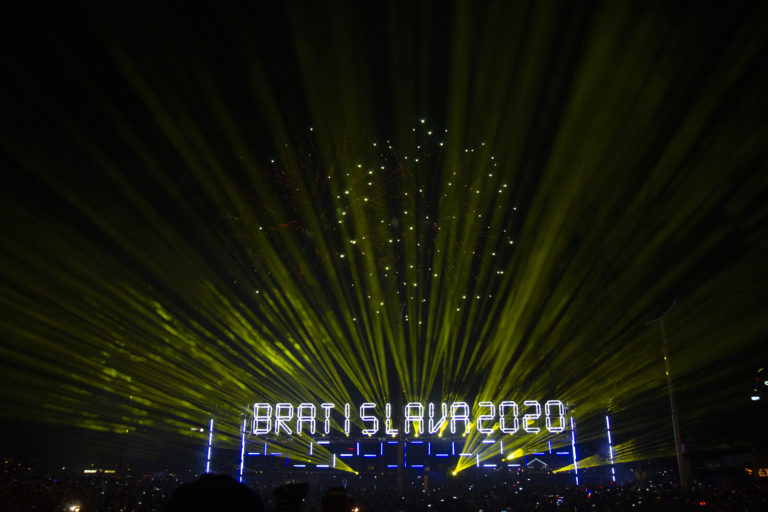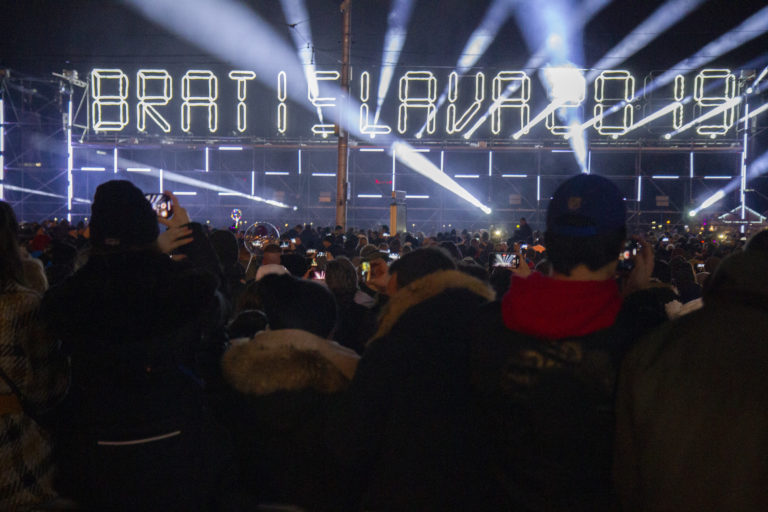 Atmosféra na Hviezdoslavovom námestí v Bratislave počas osláv príchodu Nového roka 2020. Foto: SITA/Andrea Mezeiová