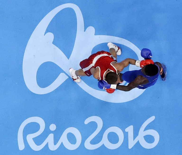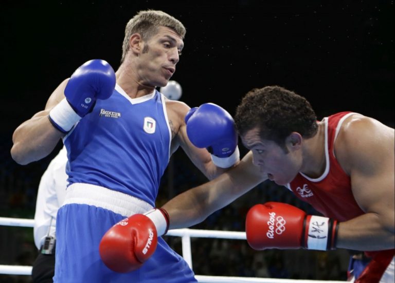 Taliansky boxer Clemente Russo v súboji s Tunisanom Hassenom Chaktamim počas zápasu v kategórii do 91 kg. Rio de Janeiro, 8. august 2016. Foto: SITA/AP