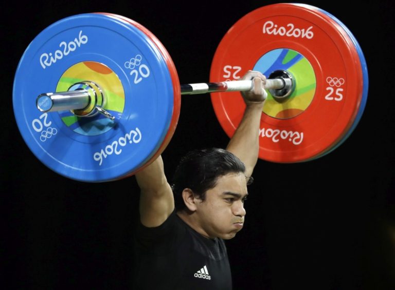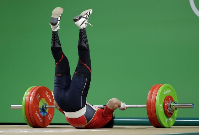 Vzpierač Julio Cesar Salamanca Pineda z El Salvádoru počas súťaže do 62 kg. Rio de Janeiro, 8. august 2016. Foto: SITA/AP