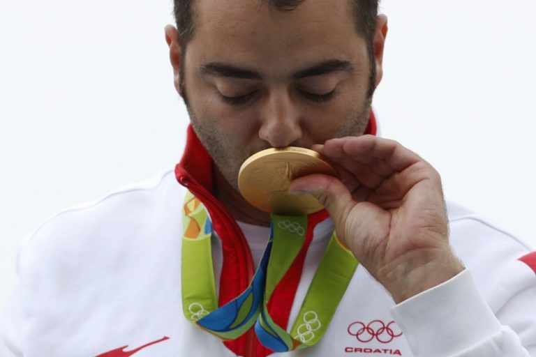 Dramatická súťaž v trape mužov priniesla na konci chorvátsku radosť. Víťazom dvojdňových pretekov sa stal Josip Glasnovič. Rio de Janeiro, 8. august 2016. Foto: SITA/AP