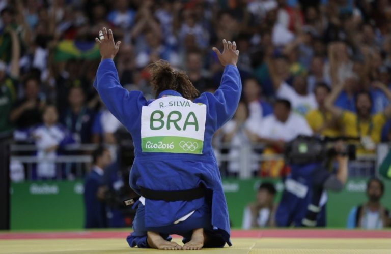 Džudistka Rafaela Silvová získala prvú zlatú medailu pre domácu Brazíliu na Hrách XXXI. olympiády v Riu de Janeiro. Dvadsaťštyriročná miestna rodáčka ovládla kategóriu do 57 kg a stala sa prvou brazílskou olympijskou víťazkou v odvetví. Tatami opúšťala v slzách, objala svojho trénera. Pochádza z najväčšieho brazílskeho slumu. Rio de Janeiro, 8. august 2016. Foto: SITA/AP
