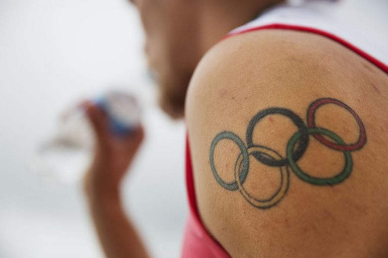 Tetovanie na ramene poľského reprezentanta vo veslovaní Zbigniew Schodowski. Rio de Janeiro, 8. august 2016. Foto: SITA/AP
