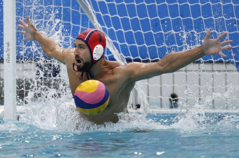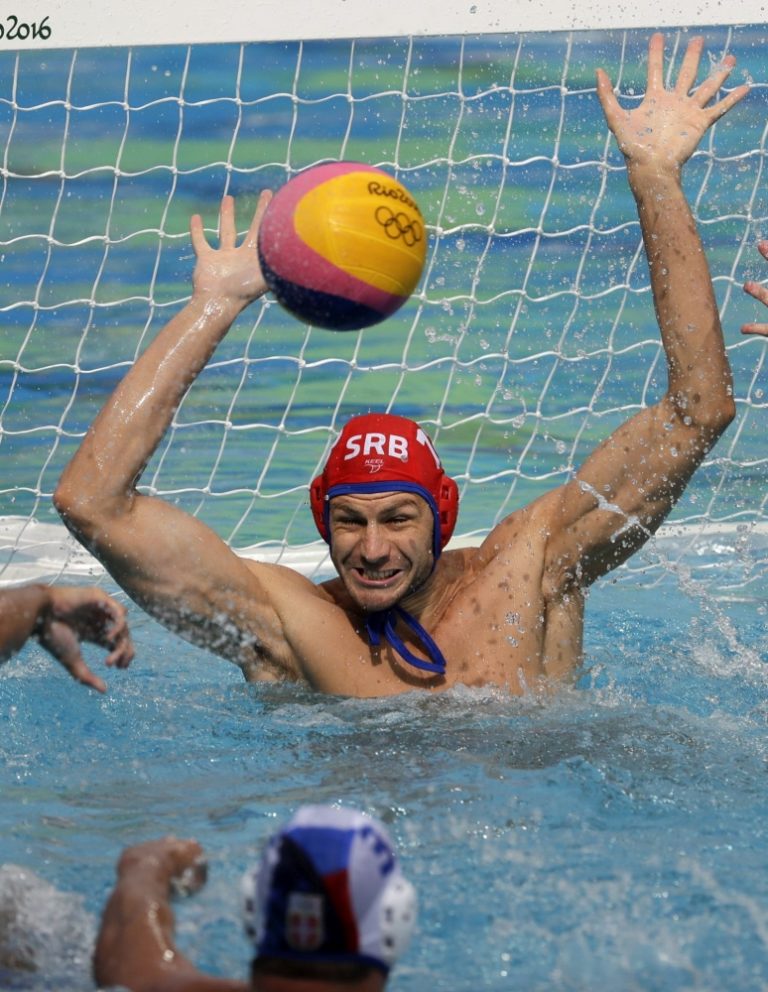 Zákrok srbského brankára Gojka Pijetloviča počas zápasu proti Grékom. Rio de Janeiro, 8. august 2016. Foto: SITA/AP