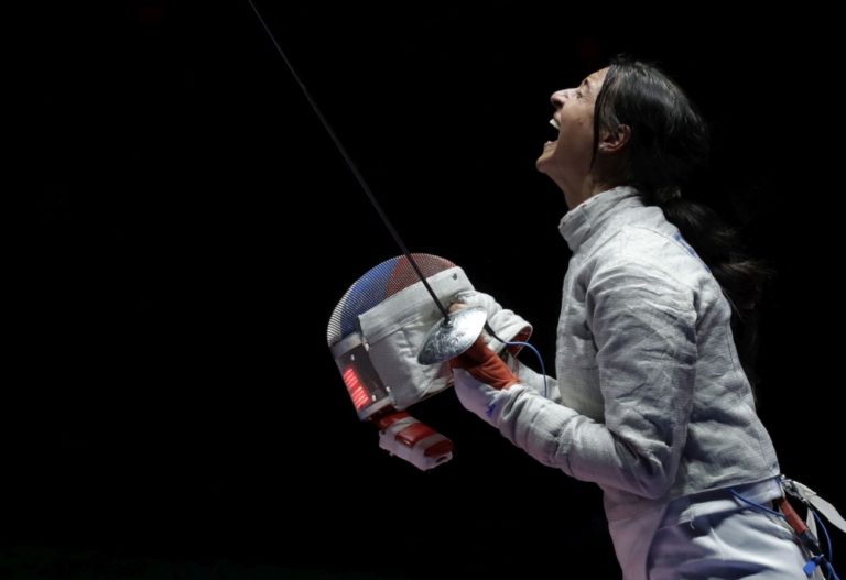 V šabli šermiarok zlatú medailu získala Ruska Jana Jegorianová, ktorá vo finále zdolala krajanku Sofia Velikú 15:14. Rio de Janeiro, 8. august 2016. Foto: SITA/AP
