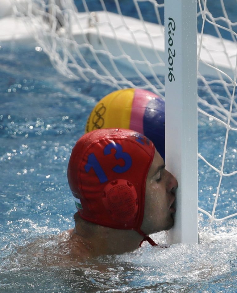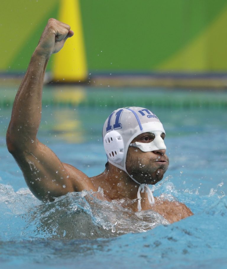 Taliansky vodnopólový reprezentant Matteo Aicardi sa raduje z gólu v sieti Francúzska. Rio de Janiero, 8. august 2016. Foto: SITA/AP