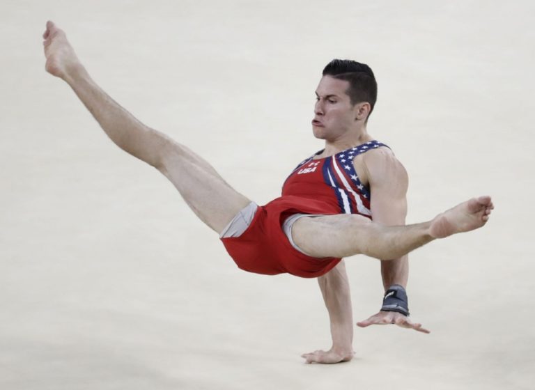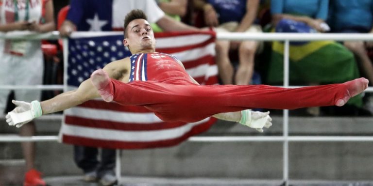 Americký gymnasta Sam Mikulak počas finále súťaže družstiev. Rio de Janeiro, 8. august 2016. Foto: SITA/AP