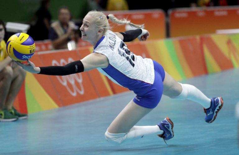 Ruská volejbalista Anna Malová počas zápasu proti hráčkam Kórejskej republiky. Rio de Janeiro, 8. august 2016. Foto: SITA/AP