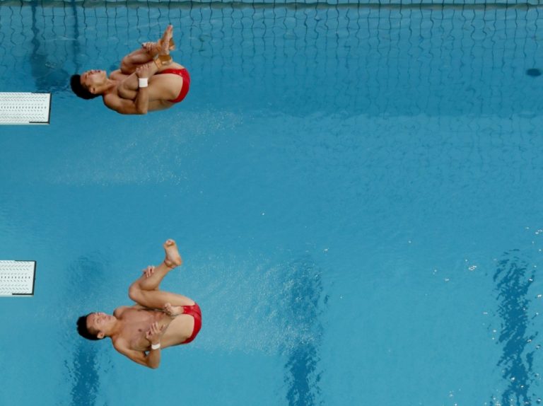 V synchrónnych skokoch do vody z 10 m veže získalo zlato čínske duo Čchen Aj-sen, Lin Jüe. Rio de Janeiro, 8. august 2016. Foto: SITA/AP