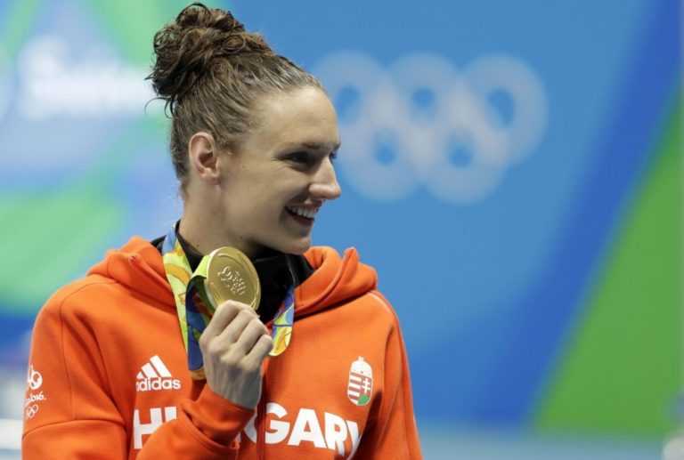 Radosť maďarskej plavkyne Katinky Hosszúovej po triumfe na 100 m znak - v Riu je to jej druhá zlatá medaila. Rio de Janeiro, 8. august 2016. Foto: SITA/AP