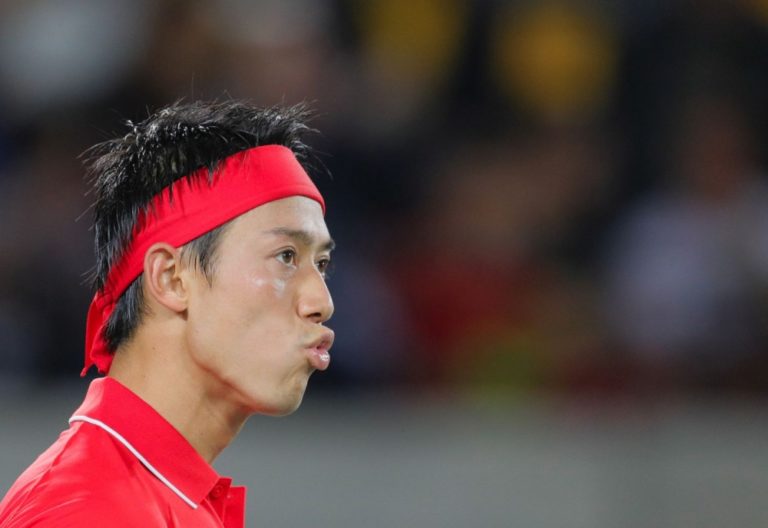 Japonský tenista Kei Nišikori počas zápasu 2. kola dvojhry mužov, v ktorom zdolal Austrálčana Johna Millmana 7:6 (4), 6:4 . Rio de Janeiro, 8. august 2016. Foto: SITA/AP