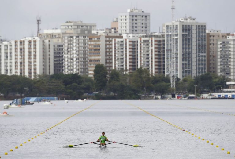 Reprezentant Litvy Armandas Kelmelis počas repasáže v skife mužov. Rio de Janiero, 8. august 2016. Foto: SITA/AP