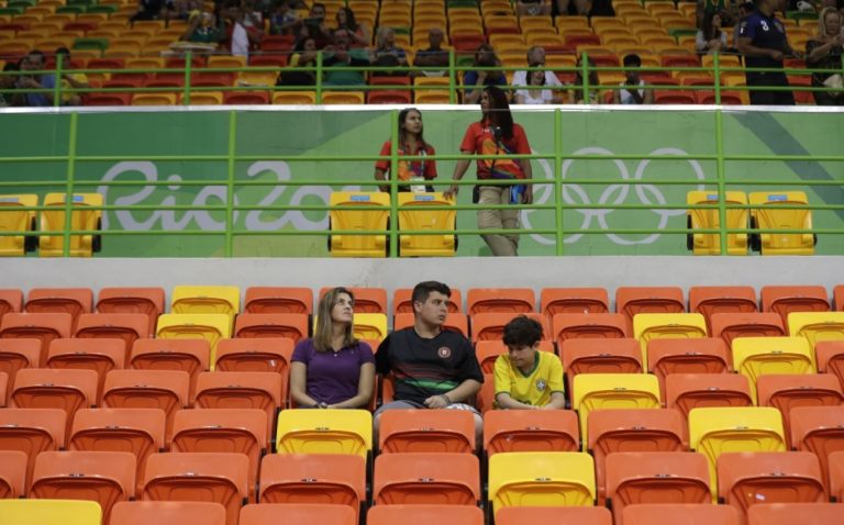 Diváci počas zápasu hádzanárskeho turnaja medzi Katarom a Chorvátskom. Rio de Janeiro, 7. august 2016. Foto: SITA/AP