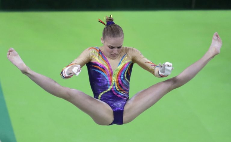 Belgická gymnastka Senna Deriksová počas nedeľňajšej kvalifikácie. Rio de Janeiro, 7. august 2016. Foto: SITA/AP