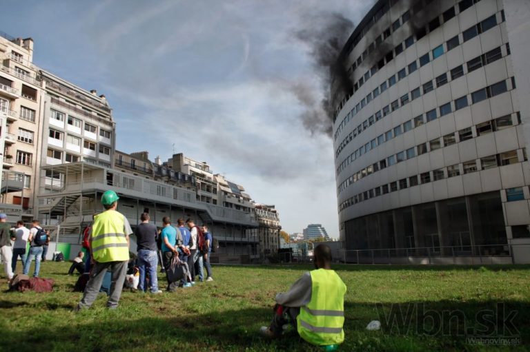 Hovorca parížskych hasičov Gabriel Plus informoval, že oheň sa zatiaľ síce nepodarilo uhasiť, avšak jeho ďalšie šírenie nehrozí. Foto: SITA/AP