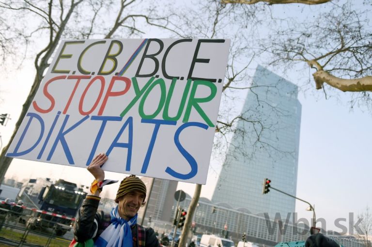 Vo Frankfurte sa zhromaždili demonštranti, ktorí protestujú proti úsporným opatreniam ECB. Foto: SITA/AP