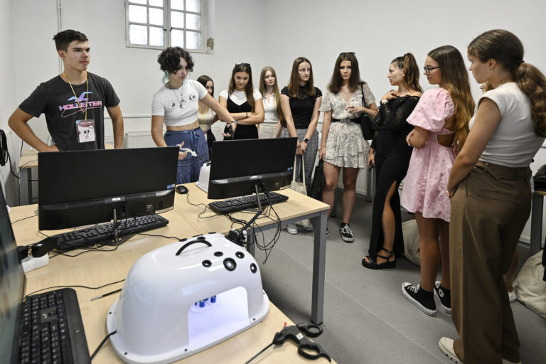 Starší medici zo študentských spolkov sprevádzajú nováčikov pri ukážke laparoskopie počas Fresher´s day na Lekárskej fakulte Univerzity Komenského (LF UK) v Bratislave. Bratislava 11. september 2023. Foto: SITA/Milan Illík