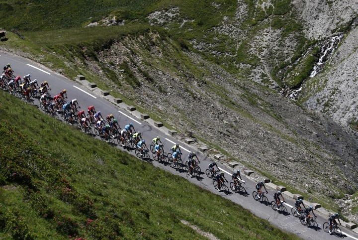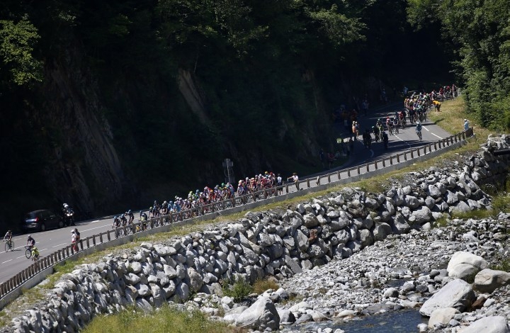 Cyklisti počas 8. etapy Tour de France, ktorá viedla z Pau do Bagnéres-de-Luchon a merala 184 kilometrov.