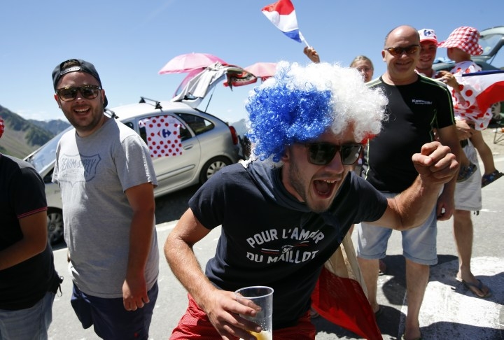 Fanúšikovia počas 8. etapy Tour de France, ktorá viedla z Pau do Bagnéres-de-Luchon a merala 184 kilometrov. Foto: SITA/AP