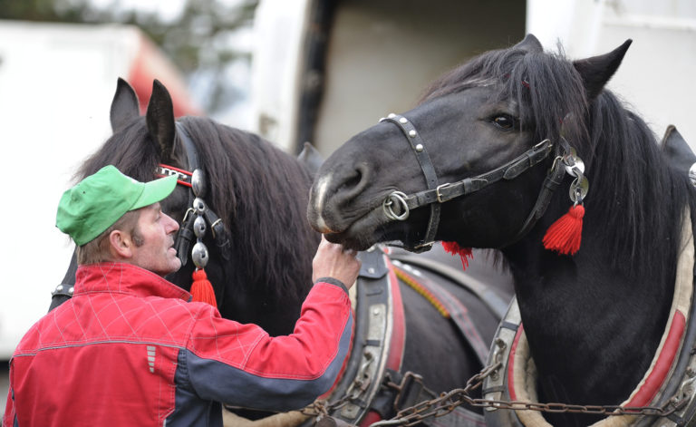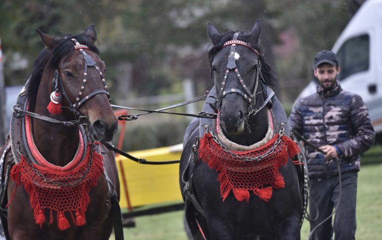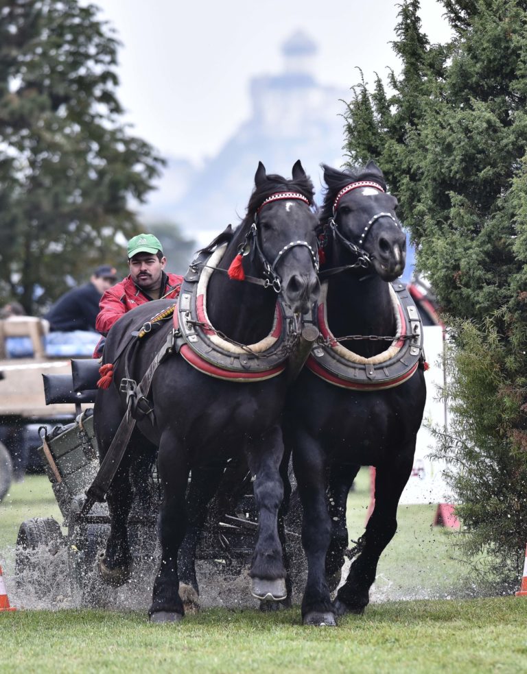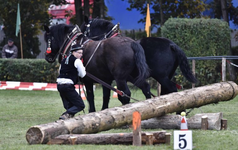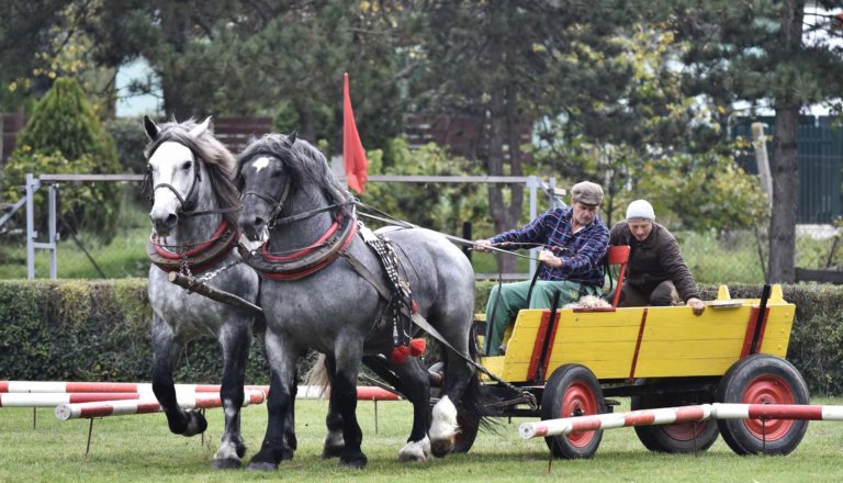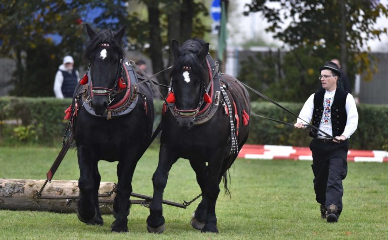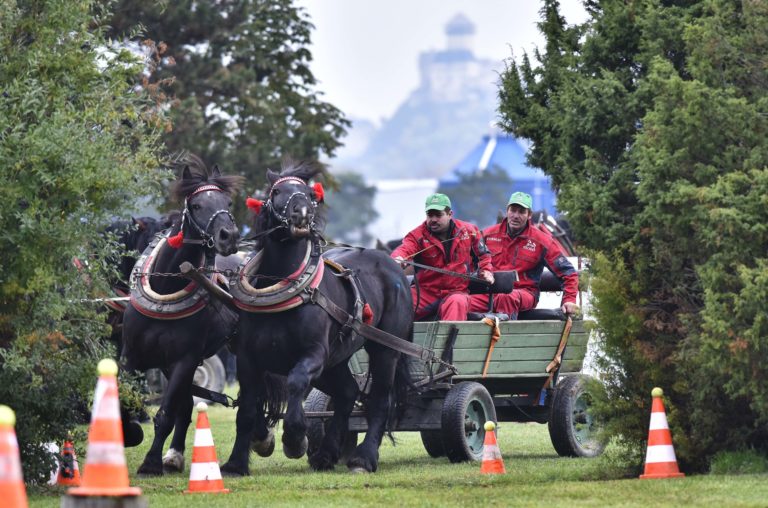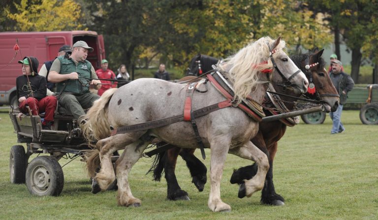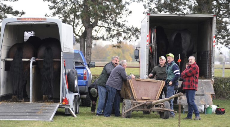 Majstrovstvo furmanov z celého Slovenska, silu a obratnosť ich koní i obyčaje a zvyky sprevádzajúce tradičné furmanské remeslo na finálovych pretekoch, ktoré sa konali v Trenčíne časti Nozdrkovce. Trenčín, 22. október 2022. Foto: SITA/Tomáš Somr.