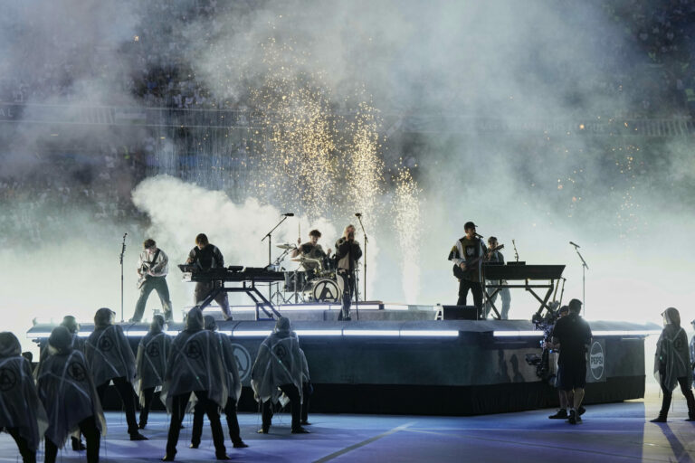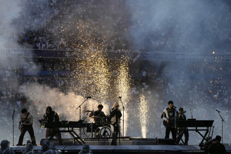 Vystúpenie kapely Linkin Park pred finálovým zápasom Ligy majstrov medzi Parížom St. Germain a Interom Miláno. Mníchov (Allianz Arena), 31. máj 2025. Foto: SITA/AP.