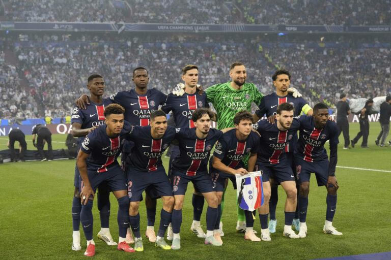 Hráči Paríža St. Germain pred zápasom proti Interu Miláno vo finále Ligy majstrov 2024/2025. Mníchov (Allianz Arena), 31. máj 2025. Foto: SITA/AP.