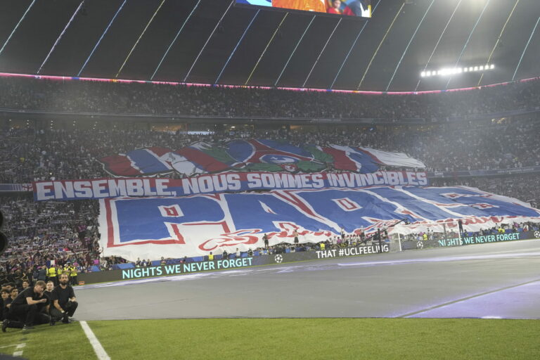 Choreo fanúšikov Paríža St. Germain pred zápasom ich tímu proti Interu Miláno vo finále Ligy majstrov. Mníchov (Allianz Arena), 31. máj 2025. Foto: SITA/AP.