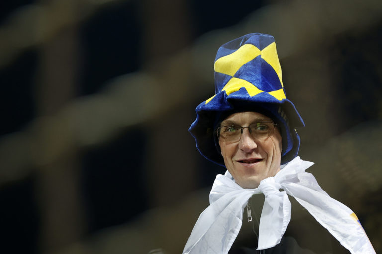 Fanúšik pred zápasom medzi Bosnou a Hercegovinou a Slovenskom v zápase J-skupiny kvalifikácie o postup na Euro 2024. Zenica, 19. november 2023. Foto: SITA/AP.
