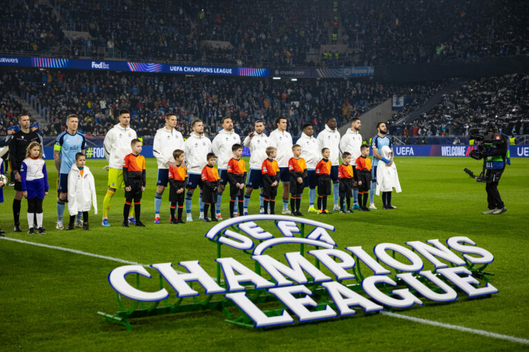 Hráči Slovana Bratislava pred začiatkom zápasu 5. kola ligovej fázy Ligy majstrov 2024/2025 proti AC Miláno. Bratislava, 26. november 2024. Foto: SITA/Jana Birošová