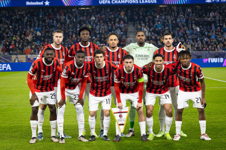 Hráči AC Miláno pred začiatkom zápasu 5. kola ligovej fázy Ligy majstrov 2024/2025 proti Slovanu Bratislava. Bratislava, 26. november 2024. Foto: SITA/Jana Birošová