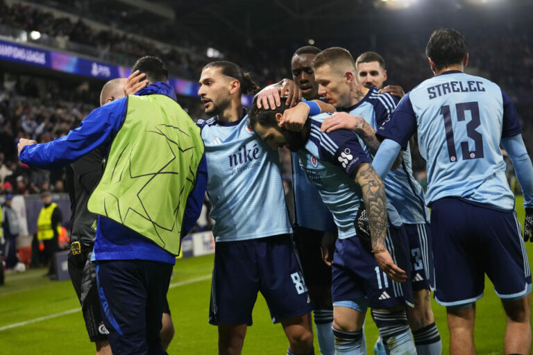 Hráči Slovana Bratislava sa radujú z gólu v sieti AC Miláno počas zápasu 5. kola ligovej fázy Ligy majstrov 2024/2025. Bratislava, 26. november 2024. Foto: SITA/AP