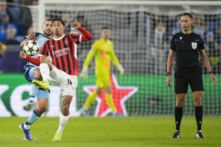 Tijjani Reijnders z AC Miláno počas zápasu 5. kola ligovej časti Ligy majstrov 2024/2025 proti Slovanu Bratislava. Bratislava, 26. november 2024. Foto: SITA/AP