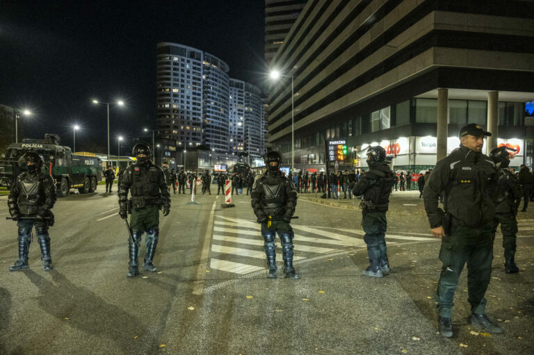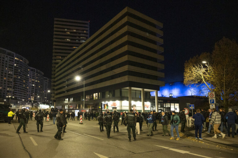 Atmosféra pred štadiónom pri vstupe hostí pred futbalovým zápasom hlavnej fázy Ligy majstrov UEFA 2024/2025 medzi ŠK Slovan Bratislava - GNK Dinamo Záhreb. Bratislava, 5. november 2024. Foto: SITA/Milan Illík