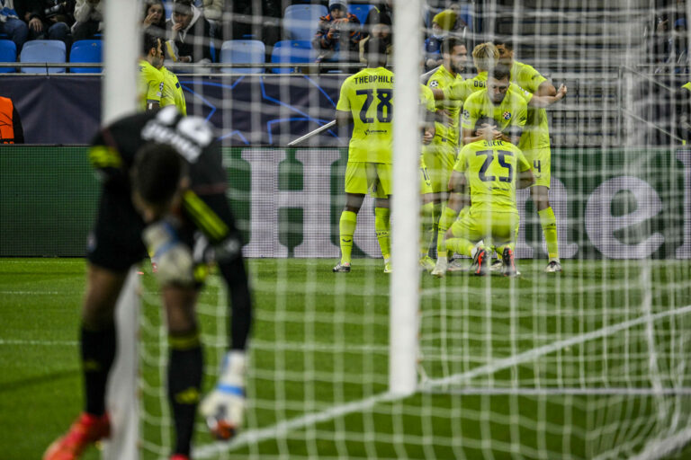 Hráči z GNK Dinamo Záhreb sa tešia po góle 1:2 počas futbalového zápasu hlavnej fázy Ligy majstrov UEFA 2024/2025 medzi ŠK Slovan Bratislava - GNK Dinamo Záhreb. Bratislava, 5. november 2024. Foto: SITA/Milan Illík