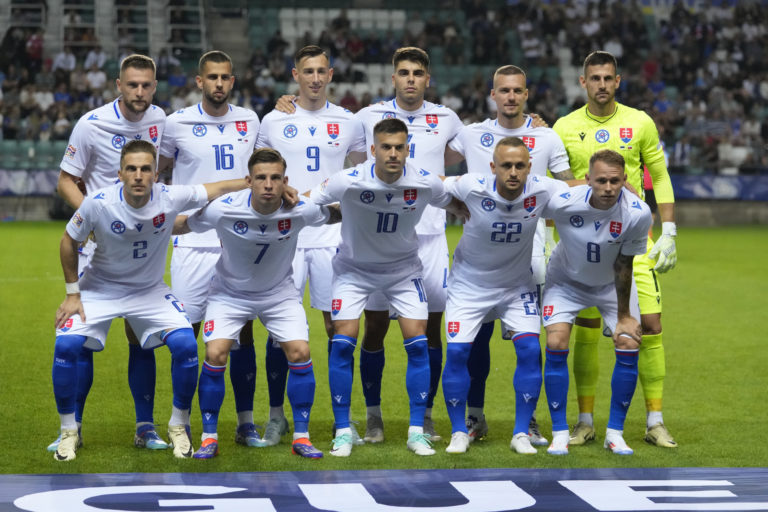 Slovenskí futbalisti pred zápasom proti Estónsku v 1. skupine C-divízie Ligy národov. Tallin, 5. september 2024. Foto: SITA/AP.