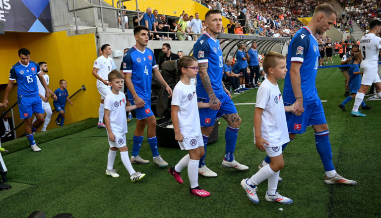 Nástup slovenskej futbalovej reprezentácie pred začatím futbalového zápasu 2. kola C-divízie Ligy národov Ligy národov medzi Slovensko - Azerbajdžan. Košice, 8. september 2024. Foto: SITA/Viktor Zamborský