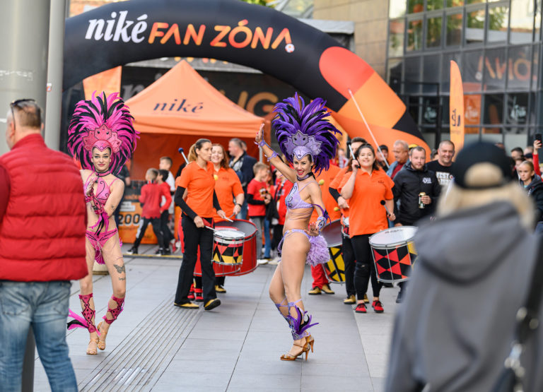 Atmosféra vo Fan zóne pred začiatkom futbalového zápasu 11. kola Niké ligy 2023/2024 medzi FC Spartak Trnava - ŠK Slovan Bratislava. Trnava, 22. október 2023. Foto: SITA/Martin Havran.