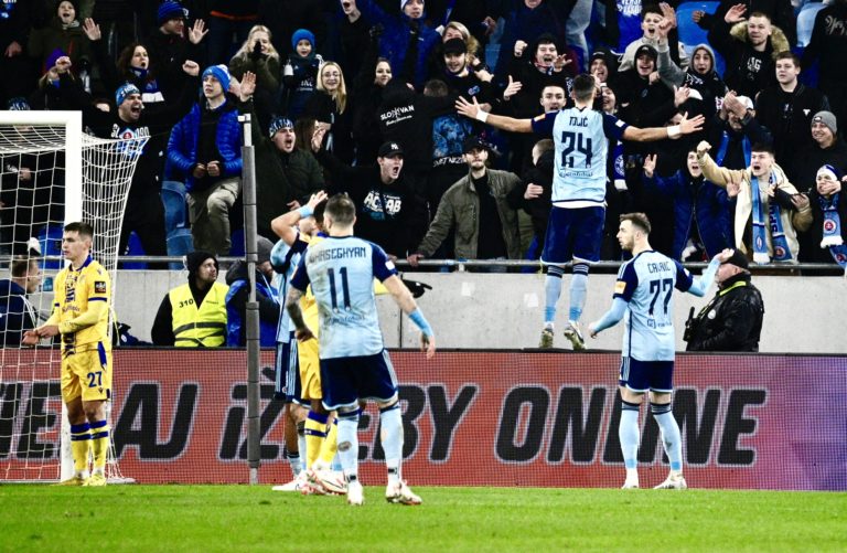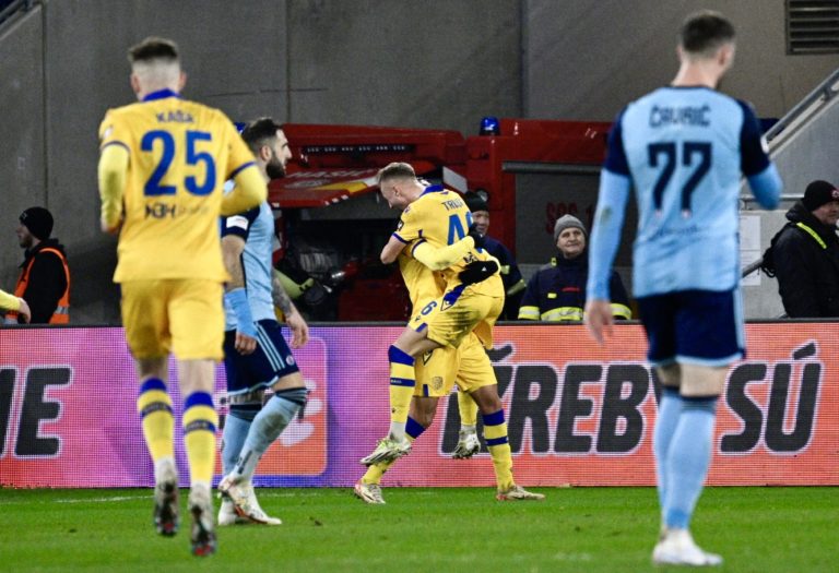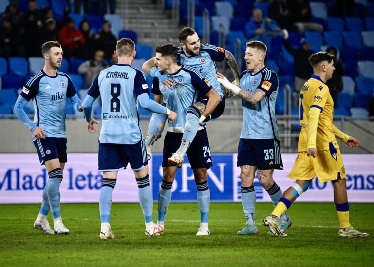 Radosť futbalistov z ŠK Slovan Bratislava po