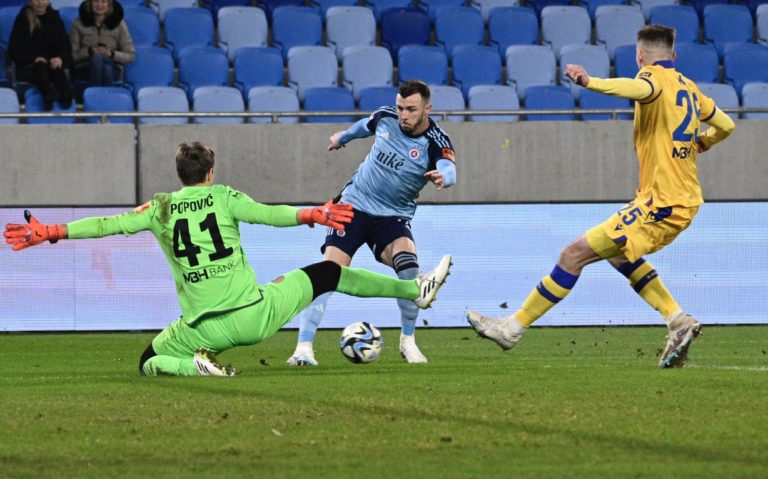 góle 1:0 počas futbalového zápasu 18. kola Niké ligy 2023/2024 medzi ŠK Slovan Bratislava - FC DAC 1904 Dunajská Streda. Bratislava, 17. december 2023. Foto: SITA/Milan Illík