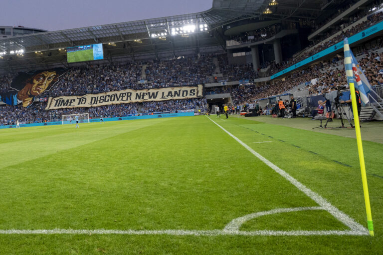 Fanúšikovia Slovana Bratislava počas odvetného zápasu 3. predkola Ligy majstrov 2025/2026 proti Kajratu Almaty. Bratislava (Tehelné pole), 12. august 2025. Foto: SITA/Milan Illík.