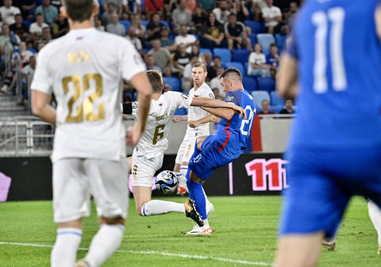 Slovenský reprezentant Ondrej Duda strieľa gól do siete Lichtenštajnska v zápase J-skupiny kvalifikácie o postup na Euro 2024. Bratislava, 11. september 2023. Foto: SITA/Milan Illík.