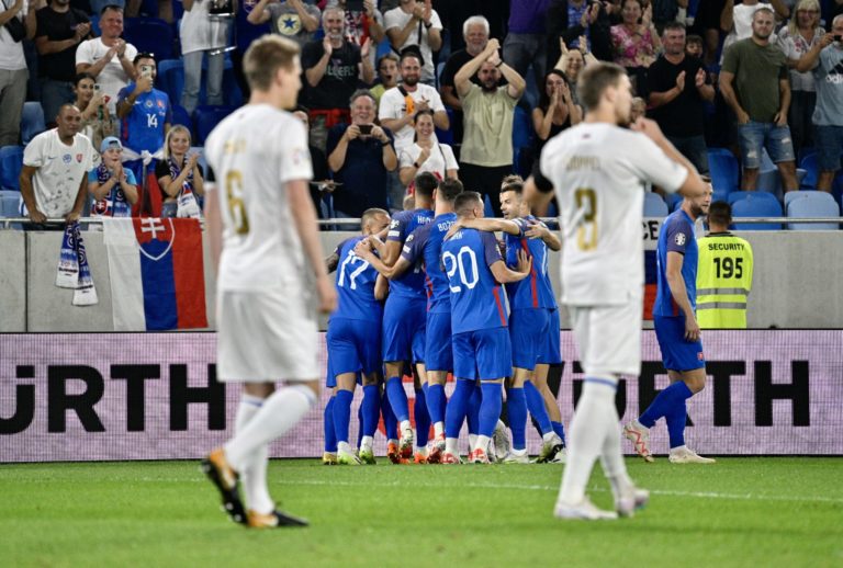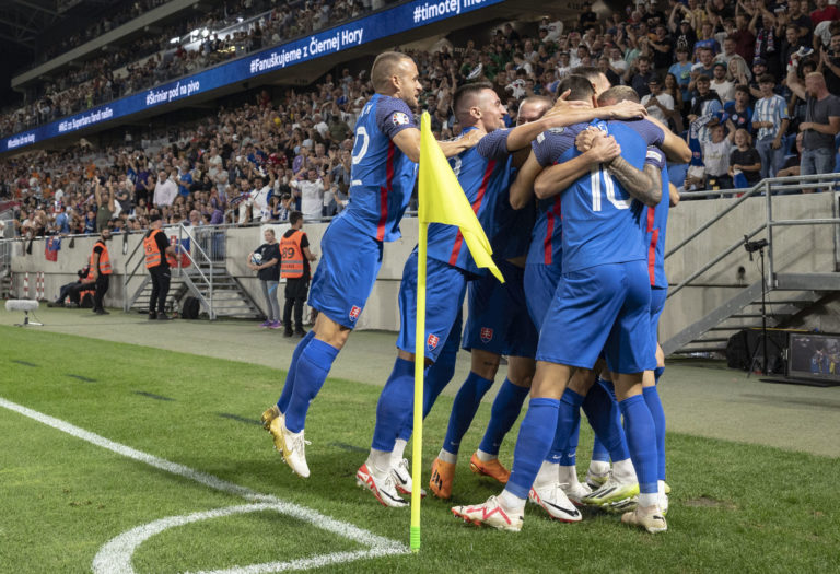 Slovenskí futbalisti po víťazstve nad Lichtenštajnskom 3:0 v zápase J-skupiny kvalifikácie o postup na Euro 2024. Bratislava, 11. september 2023. Foto: SITA/Milan Illík.