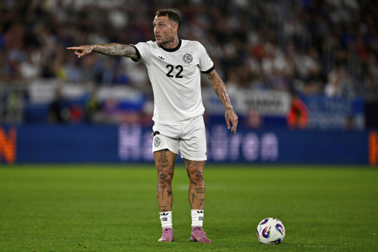 Nemecký reprezentant David Raum počas zápasu proti Slovensku proti Slovensku v kvalifikácii o postup na MS vo futbale 2026. Bratislava (Národný futbalový štadión), 4. september 2025. Foto: SITA/AP.