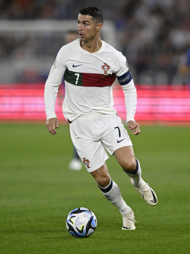 Portugalský futbalista Cristiano Ronaldo počas zápasu proti Slovensku v J-skupine kvalifikácie o postup na Euro 2024. Bratislava, 8. september 2023. Foto: SITA/AP.