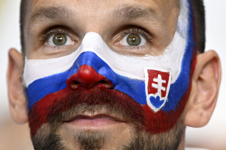Fanúšik Slovenska počas zápasu proti Portugalsku v J-skupine kvalifikácie o postup na Euro 2024. Bratislava, 8. september 2023. Foto: SITA/AP.