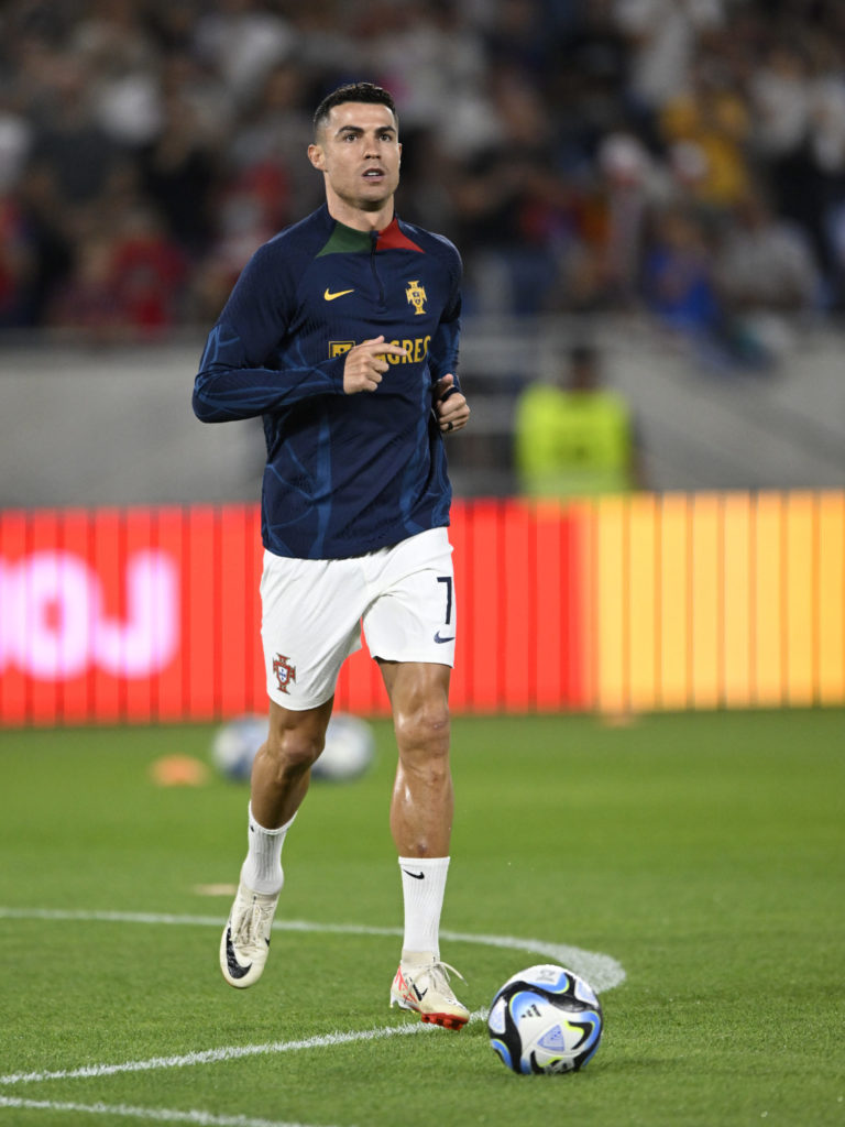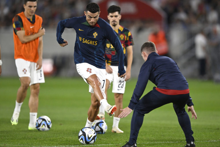 Portugalský futbalista Cristiano Ronaldo pred zápasom proti Slovensku v J-skupine kvalifikácie o postup na Euro 2024. Bratislava, 8. september 2023. Foto: SITA/AP.
