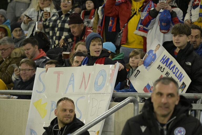 Fanúšikovia na Národnom futbalovom štadióne počas prvého zápasu baráže o postup do B-divízie Ligy národov medzi Slovenskom a Slovinskom. Bratislava, 20. marec 2025. Foto: SITA/Milan Illík.