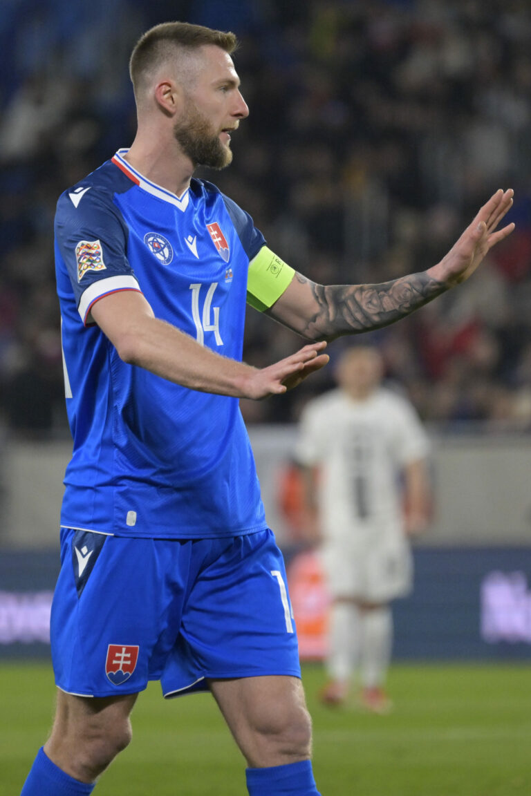 Kapitán slovenskej reprezentácie Milan Škriniar počas prvého zápasu baráže o postup do B-divízie Ligy národov proti Slovinsku. Bratislava, 20. marec 2025. Foto: SITA/Milan Illík.