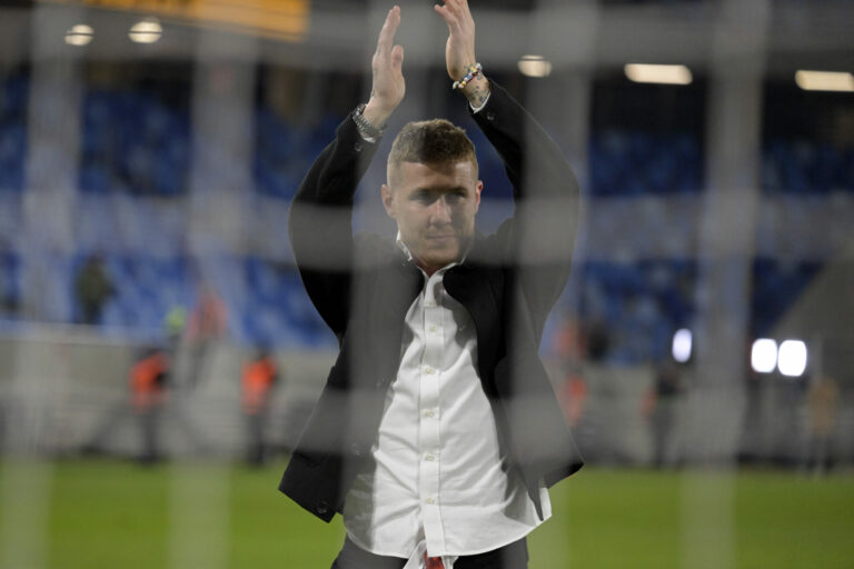 Rozlúčka Juraja Kucku s reprezentačnou kariérou po prvom zápasu baráže o postup do B-divízie Ligy národov medzi Slovenskom a Slovinskom. Bratislava, 20. marec 2025. Foto: SITA/Milan Illík.